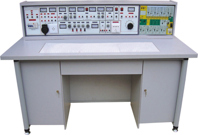 2、示教控制臺:1臺示教控制臺,分別控制12臺學(xué)生臺的電源。通用電路板演示屏立在實驗臺上,尺寸為160×70cm。用于講解、演示。