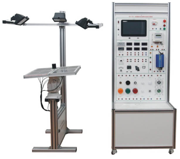 主要提供于大學、研究生、企業(yè)技工以太陽能發(fā)電為主課題的研究和培訓。設備由模擬太陽燈、太陽能電池板、二維跟蹤機構、光伏控制器、儲能蓄電池、負載、儀表及工控電腦等組成。