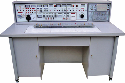 2、示教控制臺(tái):分別控制12臺(tái)學(xué)生臺(tái)的電源。通用電路板演示屏立在實(shí)驗(yàn)臺(tái)上,尺寸為160×70cm。用于講解、演示。