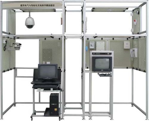 "建筑電氣與智能化實(shí)踐教學(xué)模擬樓層"是由1臺(tái)鋁合金支架和17塊網(wǎng)孔板搭建而成的兩層模擬樓宇建筑,分別模擬一棟樓宇建筑的一層機(jī)房、一層樓道、一層樓道大門、二層樓道、二層樓道窗戶、二層住戶、二層住戶大門、二層住戶窗戶、垂直豎井和建筑周邊。房間提供正反面?zhèn)葔晚攭Φ陌惭b范圍,可在上面安裝各種樓宇智能化器件;同時(shí)還提供房間大門和窗戶,可在上面安裝電插鎖、電磁鎖、門磁和窗戶防盜探測器等器件,實(shí)現(xiàn)智能建筑各類系統(tǒng)的安裝與運(yùn)行,如"對講門禁及室內(nèi)安防系統(tǒng)"和"閉路電視監(jiān)控及周邊安防系統(tǒng)"等。相比于單層模擬樓層,兩層模擬樓層需要考慮智能建筑的多樓層結(jié)構(gòu)關(guān)系,除了能夠培養(yǎng)學(xué)生的工程施工能力外,更能夠培養(yǎng)其工程設(shè)計(jì)能力與工程創(chuàng)新能力,符合高等院校的實(shí)踐教學(xué)需求。