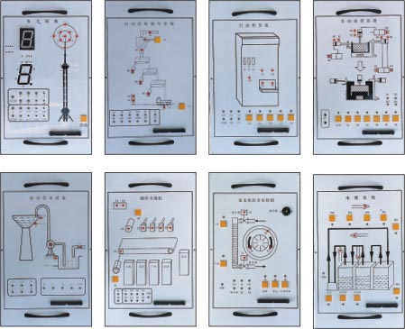 配合 PLC 可編程控制器實驗臺使用而設計的外接演示裝置。它由 LED 發(fā)光二極管、大型 LED 數(shù)碼管、直流電機、步進電機等執(zhí)行機構(gòu)用其他外圍電路模擬實際工業(yè)控制過程中的狀態(tài),它形象生動的演示了 PLC 的整個執(zhí)行過程。通過該裝置,可以鍛煉學生的動手能力,能夠形象生動的執(zhí)行機構(gòu)驗證自己編寫程序的正確性,掌握 PLC 的實際應用,增強學生對 PLC 的學習興趣。該裝置在演示屏上位置可任意移動、互換。