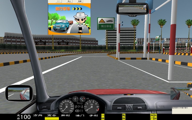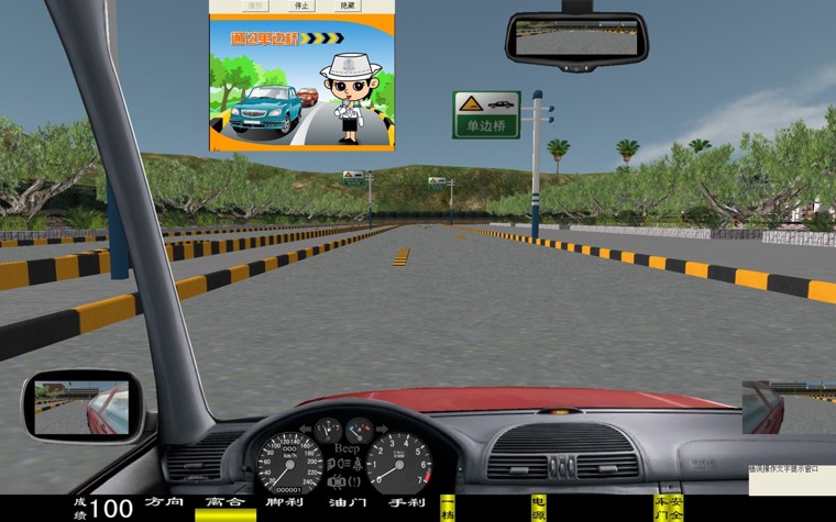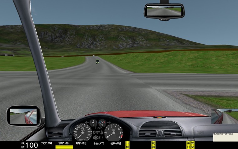 炫目訓(xùn)練” “白天”、“雪天”、“霧天”、“雨天”、“黑夜”,體會(huì)不同天氣狀況下的駕駛特點(diǎn)(例如,晴天炫目道路訓(xùn)練有早上及傍晚的炫目駕駛;雪天路面極滑;霧天視線極其不好;夜間駕駛會(huì)車時(shí)要遠(yuǎn)近燈光的切換等)。  學(xué)生駕駛艙 座機(jī)由駕駛座、視屏彩電、汽車五大操作系統(tǒng)、核心計(jì)算機(jī)、高級(jí)進(jìn)口傳感器、數(shù)據(jù)采集板等組成,各操作部件通過傳感器,經(jīng)數(shù)據(jù)傳感板傳輸。  駕駛模式 被動(dòng)式:被動(dòng)式駕駛適用于初學(xué)的學(xué)員,學(xué)生可以按照電腦語音提示進(jìn)行規(guī)范的操作練習(xí)。 主動(dòng)式:主動(dòng)式駕駛與實(shí)際車輛相同。  功能  主視屏:顯示駕駛前方道路與周圍路況、使學(xué)生能感覺身在駕駛室操作著運(yùn)行中的汽車。并顯示檔位、成績(jī)分?jǐn)?shù)。  后視鏡:能達(dá)到與真車相同的模擬效果。可升降。  模擬儀表:顯示車速、里程、發(fā)動(dòng)機(jī)轉(zhuǎn)速。并且可自行決定關(guān)閉或開啟。  特殊功能:通過鼠標(biāo)操作可由正常駕駛室駕駛模式切換到以府視式駕駛模擬 .  訓(xùn)練場(chǎng)景科目: ⑴ 一般道路; ⑵ 高速公路; ⑶ 城市道路;(包括:行人、自行車、其它車輛、雙黃線、崗?fù)、警察、紅綠燈、轉(zhuǎn)盤、交通標(biāo)志標(biāo)線等。) ( 4 )炫目道路 ( 5 )泥濘道路 ( 6 ) 山區(qū)道路; ( 7 ) 曲線穿樁、場(chǎng)地倒庫; ( 8 )“ 8 ”字型路; ( 9 ) 直角彎路、十字路口、丁字路口、匝道等。 ( 10 ) 蛇形路; ( 11 ) 就位停車; ( 12 ) 順行停車; ( 13 )雙邊橋; ( 14 )單邊橋; ( 15 )單凸橋; ( 16 )橫斷橋; ( 17 )騎越障礙; ( 18 )立交橋; ( 19 )隧道。  天氣 一般道路可選擇四種天氣:白天、雪天、霧天、雨天、黑夜。  畫面選擇  可以選擇“打開”或“關(guān)閉”:后視鏡、向?qū)У貓D、錯(cuò)誤提示、成績(jī)等。  其它車輛選擇 各道路分 4 種數(shù)目選擇: 3 至 60 輛。  車型選擇 在訓(xùn)練中有六種車型:小轎車、吉普車、無級(jí)變速車(自動(dòng)檔)、大貨車、大客車、農(nóng)用車等。  汽車模擬技術(shù) 汽車多自由度數(shù)學(xué)模型,實(shí)現(xiàn)汽車轉(zhuǎn)向、制動(dòng)和加速的逼真模擬。  測(cè)試調(diào)整功能 傳感器測(cè)試:方向機(jī)的測(cè)試、離合器的測(cè)試、油門的測(cè)試、制動(dòng)器的測(cè)試(腳剎)、手制動(dòng)的測(cè)試、變速器各檔位的測(cè)試、鳴號(hào)、點(diǎn)火、開鎖。只要打開測(cè)試界面便一目了然。并可作學(xué)員操作曲線學(xué)仿 第二節(jié) 汽車駕駛模擬器軟件技術(shù)指標(biāo) ● 軟件增加 ※界面儀表盤上顯示有: 車速表、發(fā)動(dòng)機(jī)轉(zhuǎn)速表、大燈、(遠(yuǎn)光燈、近光燈、視寬燈)、轉(zhuǎn)向燈、安全帶提示燈、車門關(guān)閉提示燈、警告燈及機(jī)油電瓶燈等 , 與硬件配合,錯(cuò)誤操作進(jìn)行扣分并具有語音提示。 ※界面顯示新增加: 80 度全新視角寬頻模擬駕駛、轉(zhuǎn)向、油門、剎車、離合器深淺進(jìn)度顯示;檔位、訓(xùn)練成績(jī),后視鏡(左、右、中)、場(chǎng)景地圖顯示 ; 與硬件配合。 ※語言提示新增加: 壓雙黃線,闖紅燈提示;并在每次駕駛訓(xùn)練后系統(tǒng)自動(dòng)給予評(píng)分即“成績(jī)優(yōu)秀”“成績(jī)中等”“成績(jī)不合格”的提示音及字幕。 汽車駕駛模擬器駕駛模擬軟件采用汽車多自由度數(shù)學(xué)模型,實(shí)現(xiàn)汽車轉(zhuǎn)向、制動(dòng)和加速的逼真模擬;另外利用最新的計(jì)算機(jī)技術(shù),實(shí)現(xiàn)真實(shí)的三維場(chǎng)景及逼真的聲音模擬。 1 駕駛模式選擇 單機(jī)訓(xùn)練:?jiǎn)闻_(tái)駕駛艙獨(dú)立訓(xùn)練,訓(xùn)練時(shí)候場(chǎng)景內(nèi)部的其他車輛、自行車、行人等由系統(tǒng)根據(jù)交通規(guī)則及交通模型發(fā)出,模擬真實(shí)的交車、會(huì)車、跟車等。 被動(dòng)駕駛:系統(tǒng)根據(jù)已經(jīng)配置好的被動(dòng)駕駛文件播放視頻以及操作語音提示, 學(xué)員可以在沒有教練指導(dǎo)下按照操作語音提示學(xué)習(xí),學(xué)習(xí)正確的操作順序。被動(dòng)駕駛文件可以自行配置,以便根據(jù)自己的特點(diǎn)配置出符合訓(xùn)練大綱要求的被動(dòng)駕駛文件。被動(dòng)駕駛功能對(duì)初學(xué)駕駛的學(xué)員來說非常有用,如果學(xué)員沒有按照提示操作,系統(tǒng)將報(bào)錯(cuò)并扣分。 網(wǎng)絡(luò)互動(dòng):通過中央控制臺(tái)可以最多連接 25 臺(tái)駕駛艙,實(shí)現(xiàn)聯(lián)網(wǎng)訓(xùn)練,場(chǎng)景中可以看見其他駕駛艙所駕駛的車輛,并看見其他駕駛艙所駕車輛的轉(zhuǎn)向燈、剎車燈以及聽見其他車輛的喇叭。 2 訓(xùn)練場(chǎng)景科目 訓(xùn)練場(chǎng)景包括: 一般道路 :場(chǎng)景中有鐵道路口、單行道、限定距離換檔等內(nèi)容。 高速公路 :場(chǎng)景中有超車道、行車道、出口等交通標(biāo)志牌,車距確認(rèn)、隧道、高速公路出入口等內(nèi)容。 城市道路 :場(chǎng)景中有立交橋、十字路口、丁字路口、環(huán)形島、環(huán)城路、行人橫穿道路等內(nèi)容。 炫目道路: 使學(xué)員在晴天強(qiáng)光照耀下體會(huì)行駛中車距的確認(rèn)、會(huì)車觀察車輛與來車的位置關(g
