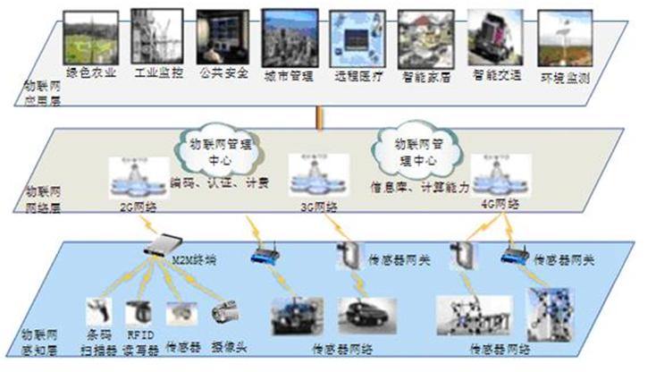 物聯(lián)網是一種通過射頻識別、紅外感應器、全球定位系統(tǒng)、激光掃描器等信息傳感設備,按約定的協(xié)議,把任何物品與互聯(lián)網連接起來,進行信息交換和通訊,以實現智能化識別、定位、跟蹤、監(jiān)控和管理的網絡。該技術是集傳感技術、通信技術、網絡技術、計算機技術、控制技術等多種技術于一體的綜合應用學科。物聯(lián)網由應用層、網絡層、感知層等三層結構組成。